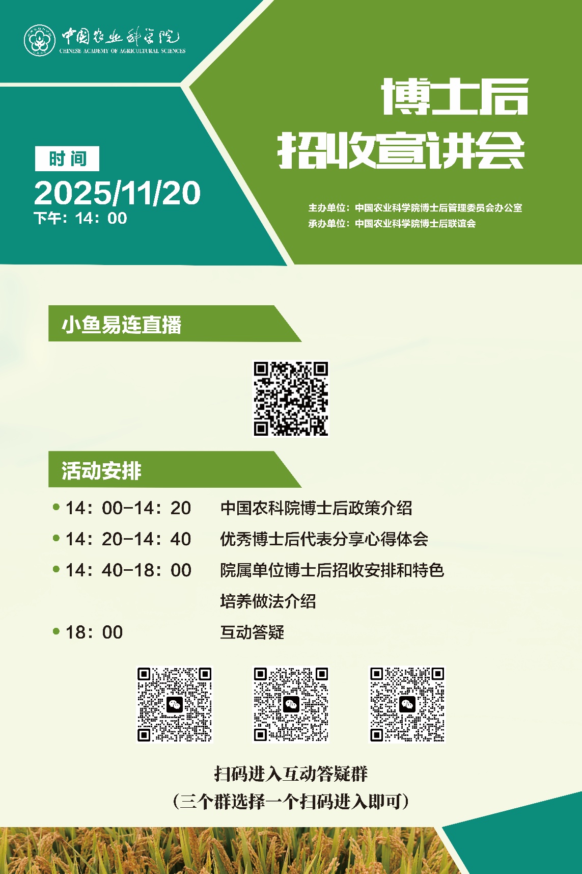 信息来源:中国农业科学院佛山鲲鹏现代农业研究院 | 作者:博士后招聘网 | 时间:2025-11-20 14:47